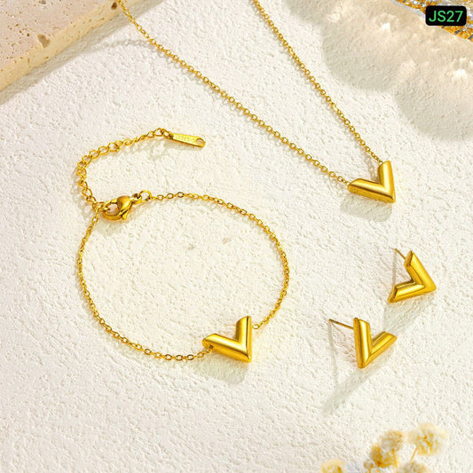Multi Love Real Gold Style Necklace & Bracelet Set