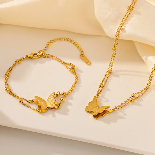 Luxury Butterfly Necklace & Bracelet Set (18k Gold Plated)