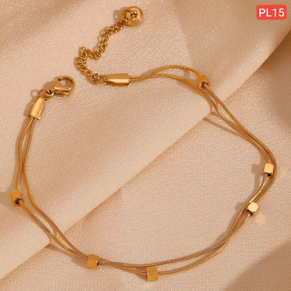 Double Chain Square Ball Anklet Payel 18k Gold Plated