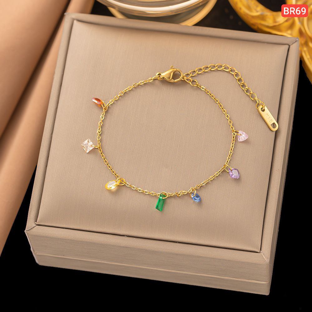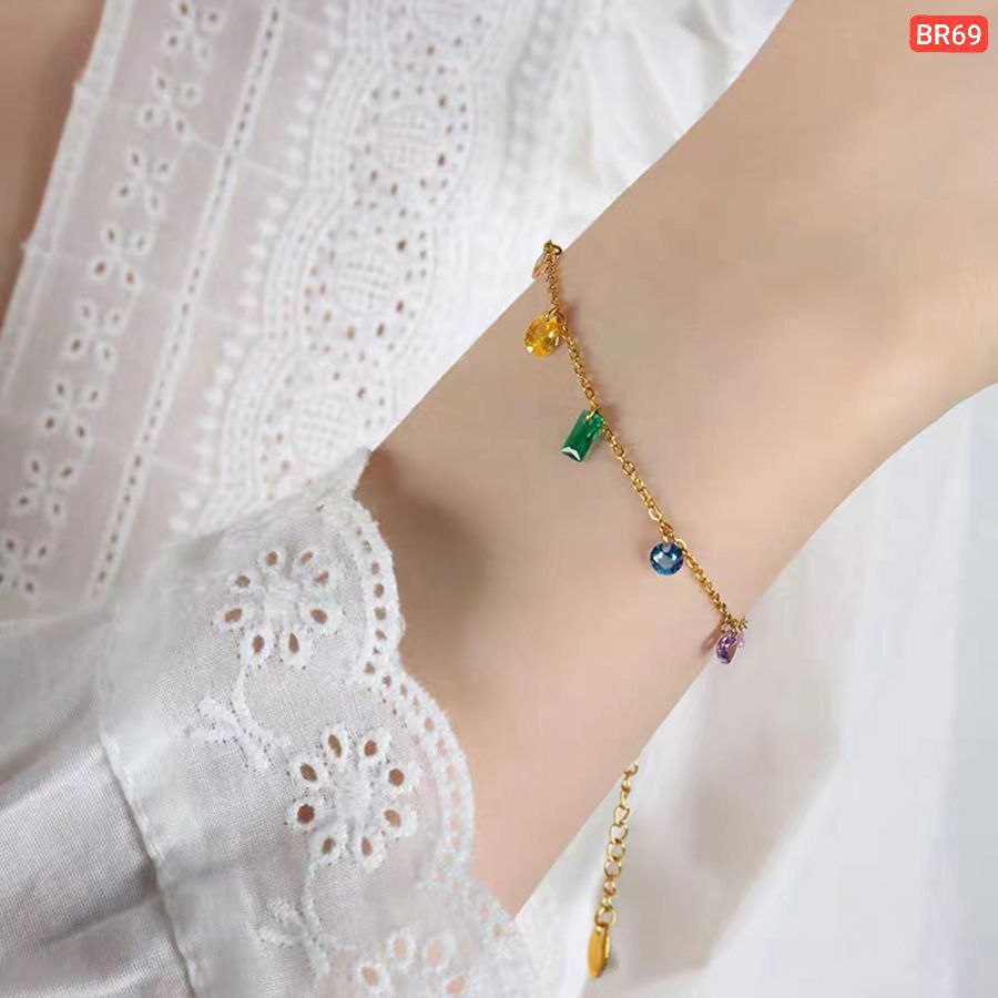 Multi Color Hanging Stone Bracelet (18k Gold Plated)