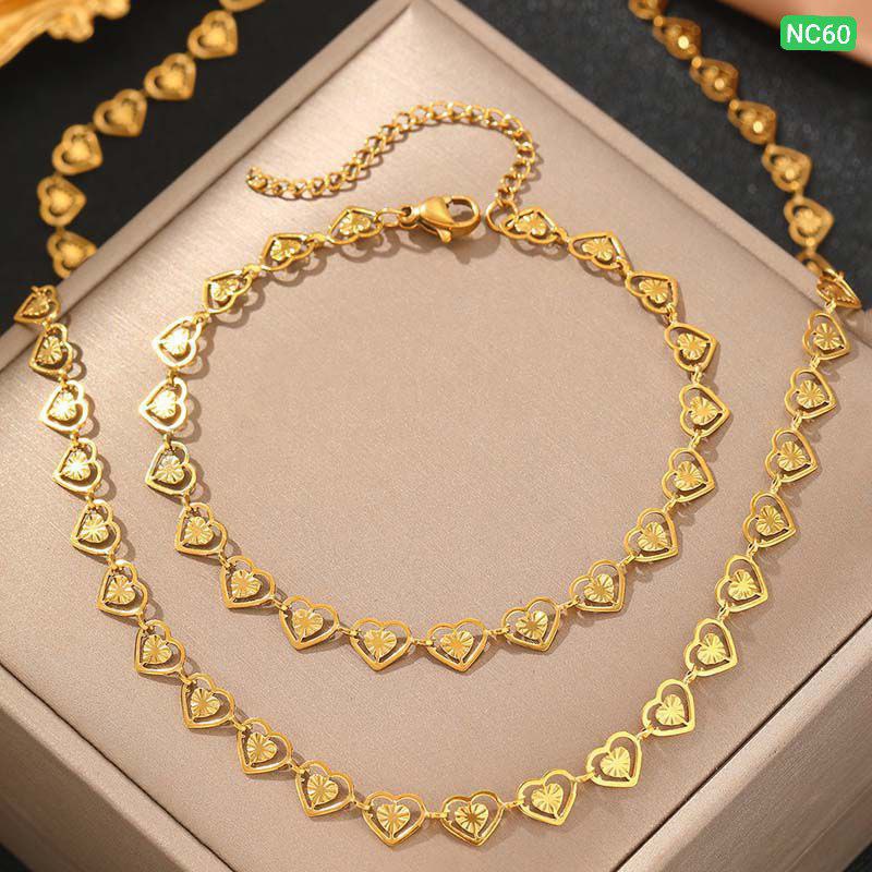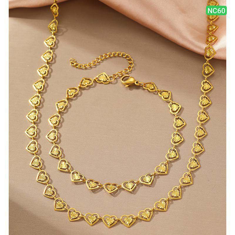 Multi Love Real Gold Style Necklace & Bracelet Set